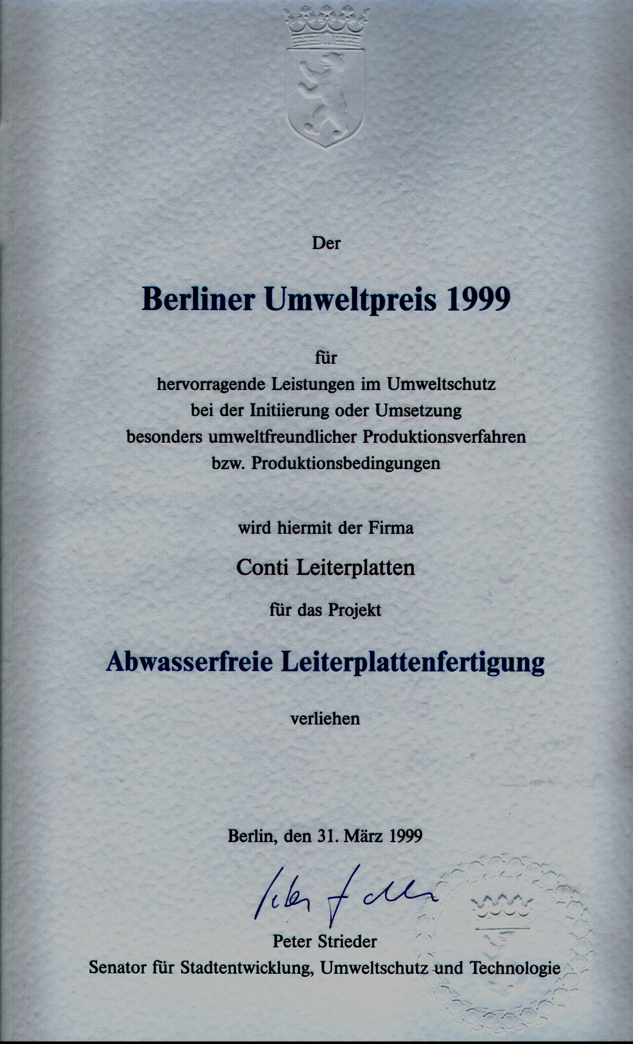 Berliner Umweltpreis für Abwasserfreie Fertigung